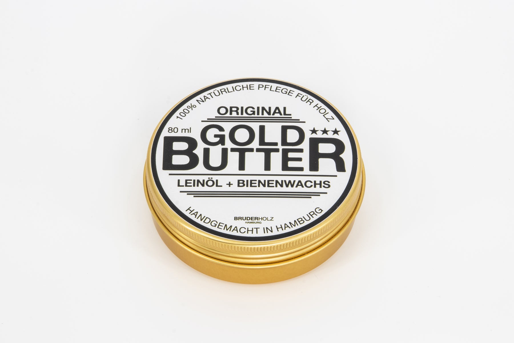 Die Original Gold Butter ist unsere Premium-Holzpflegebutter für den perfekten Finish deiner Holzoberflächen und Möbel. Mit natürlichen Inhaltsstoffen pflegt, schützt und versiegelt sie das Holz, erhält die natürliche Schönheit und verlängert die Lebensdauer deiner hochwertigen Holzprodukte.